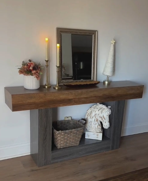 63-Inch Farmhouse Console Table, Solid Wood Hallway Entry Table for Living Room
