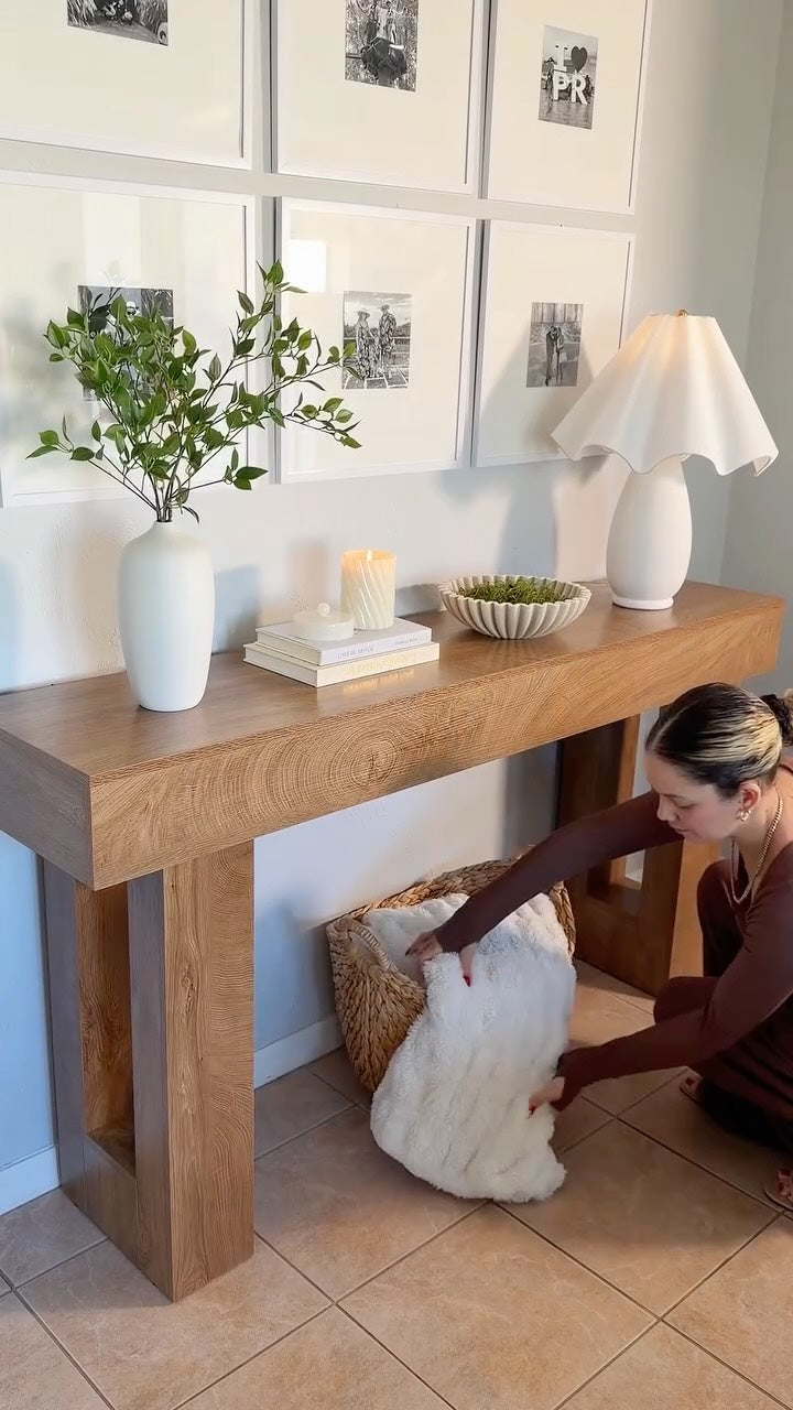 55-Inch Farmhouse Console Table, Rustic Wooden Sofa Table with Storage