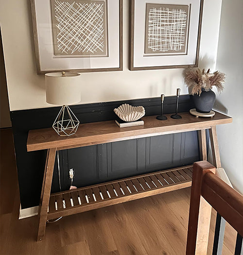 42" Console Table, Wood Sofa Table Accent Table with Geometric Base