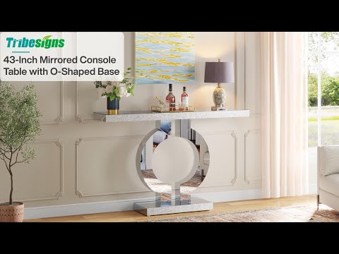 43" Mirrored Console Table, Modern Silver Sofa Table with O-Shaped Base