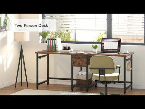 Spacious Two-Person Workstation: This generously sized desk provides ample room for two people to work comfortably side-by-side, featuring a large desktop surface that accommodates multiple computers and work essentials. The smart design includes two storage drawers for organizing office supplies and documents, along with an elevated open shelf that keeps CPUs protected from moisture and electrical hazards. Thoughtful additions like built-in hooks for headphones and anti-scratch floor pads enhance functionality while maintaining a clean, organized workspace.